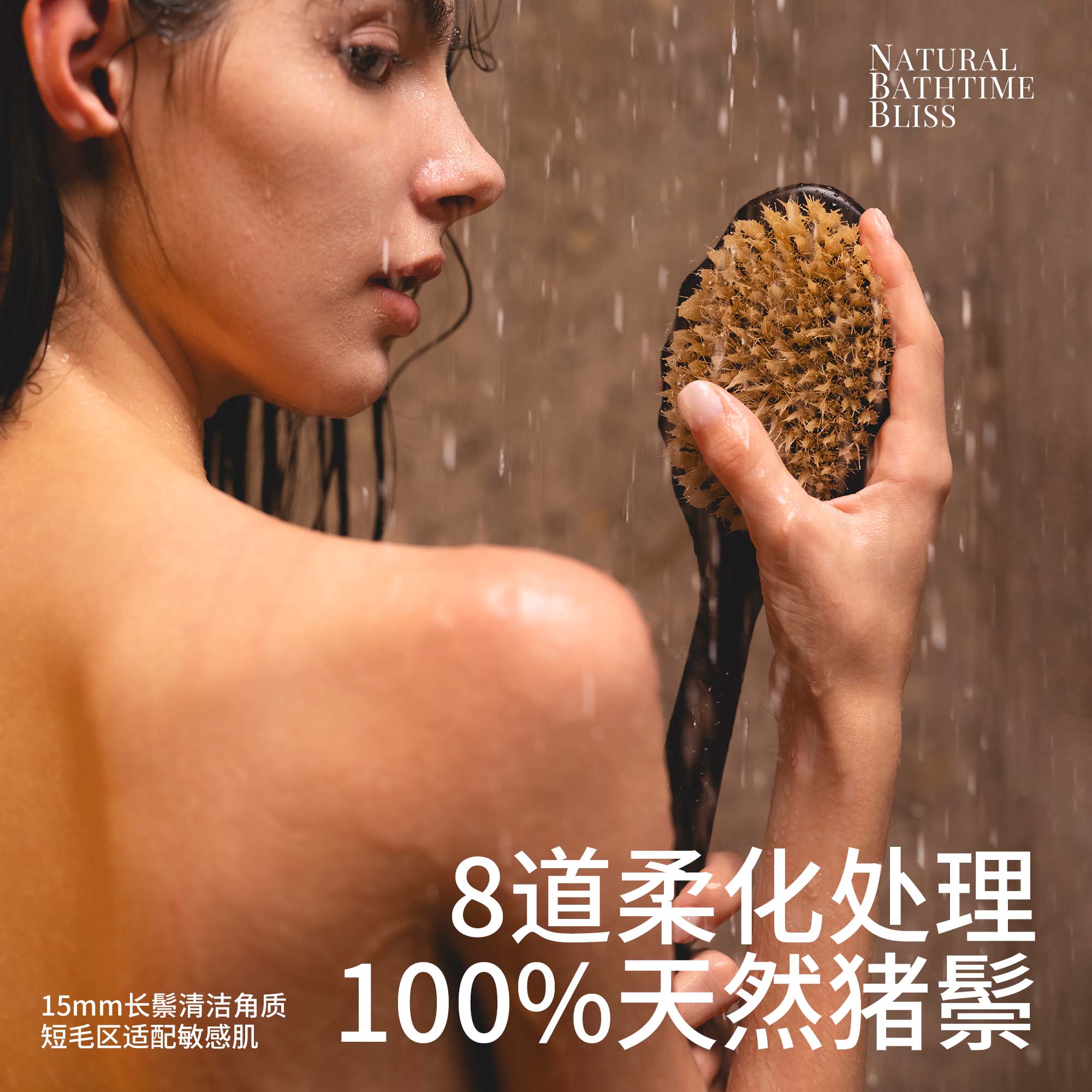 KRRAMEL乌檀木洗澡刷长柄沐浴刷猪鬃毛浴刷搓澡刷背身体刷软毛款