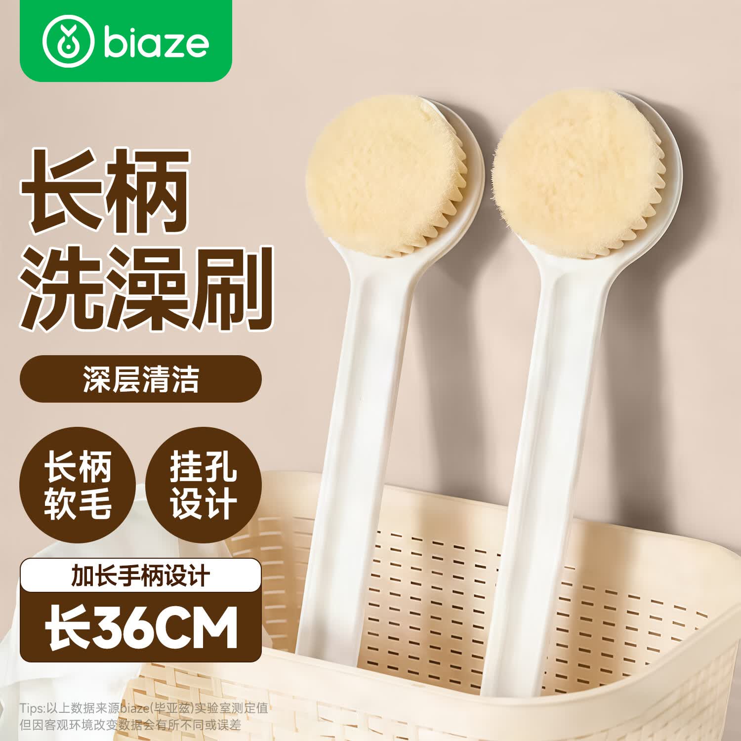 毕亚兹 洗澡刷子长柄清洁刷软毛身体刷沐浴刷搓背刷搓澡刷子